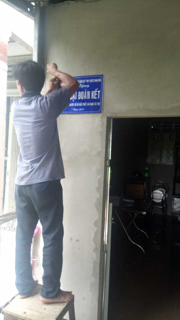 Hộ gia đình treo biển căn nhà đại đoàn kết được Công ty TNHH MTV Xổ số Kiến thiết An Giang tài trợ