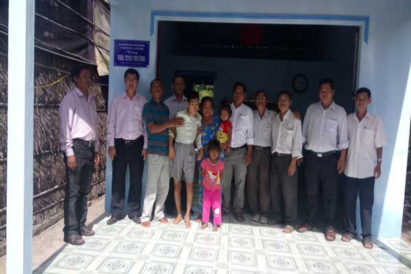 Nhà tài trợ ban ngành, đoàn thể, chính quyền địa phương đến thăm một hộ gia đình nhận nhà tình thương.