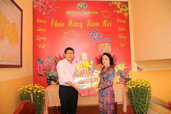 Ông Trần Văn Lắm - Chủ tịch Công ty và ông Trình Bảo Châu – Phó Giám đốc Công ty Chúc Tết Tỉnh ủy An Giang