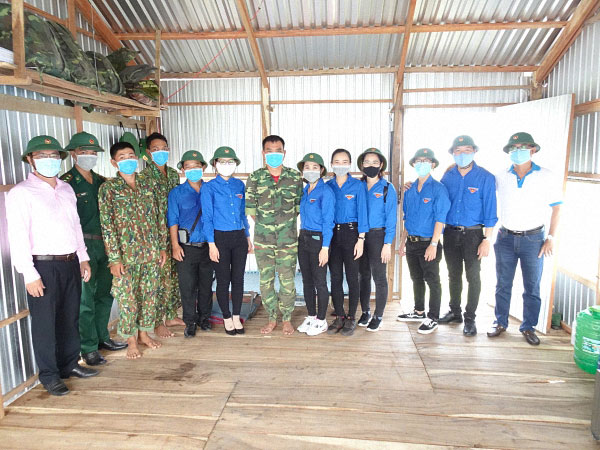 Sau buổi họp mặt và trao tập cho các em học sinh, Đoàn đã đến thăm các đ/c ở các chốt phòng, chống dịch Covid – 19 của Đồn BP Nhơn hội. Các chốt BP tuy đơn sơ nhưng lại đong đầytình cảm cũng như sự quyết tâm của các anh chiến sĩ đã ngày đêm canh giữ không ngừng nghỉ biên giới đất nước nói chung cũng như quê hương An Giang nói riêng, ngăn không cho người qua biên giới bất hợp pháp nhất là trước tình hình cả nước đang phảinổ lực từng phút, từng giâyvà trong từng hành động, suy nghĩđể chống dịch thành công. Tình hình dịch bệnh trong cả nước đang dần được kiểm soát cũng nhờ một phần sự hy sinh thầm lặng của các anh. Nhìn thấy điều đó, các mạnh thường quân đã hỗ trợ kinh phí để cất mới các chốt BP bị ngập nước, nhờ vậy các chốt BP nay đã khang trang và đầy đủ tiện nghi hơn trước.