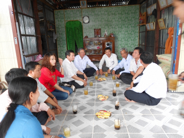 Sau buổi lễ nhà tài trợ và ban ngành đã đến thăm gia đình một hộ dân được nhận nhà tại xã Đào Hữu Cảnh.