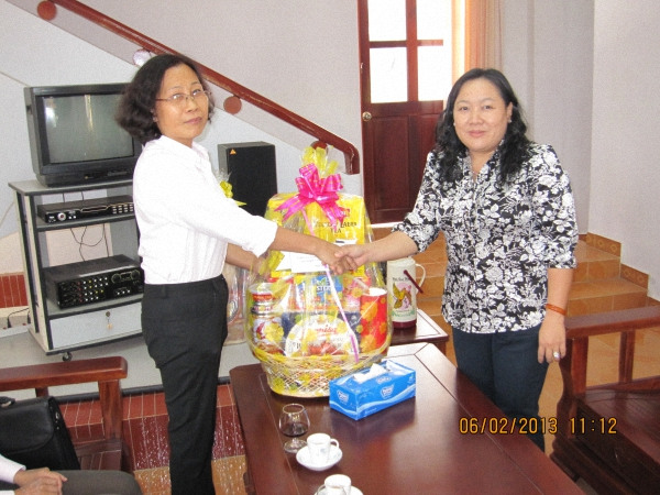 Đ/c Lê Thị Cẩn thay mặt Tổ nữ công Cty xổ số kiến thiết chúc tết và tặng quà