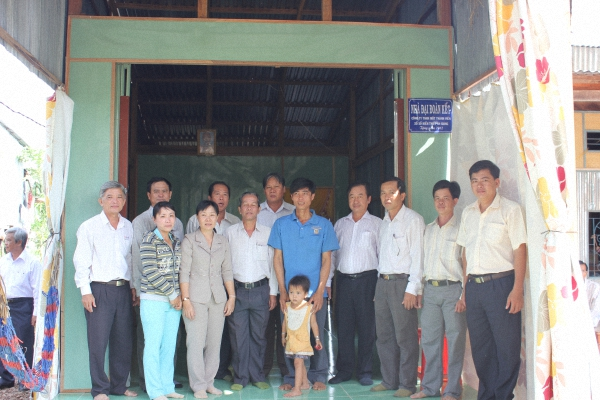 Hình các đại biểu thăm hộ nhận nhà Đại đoàn Kết.