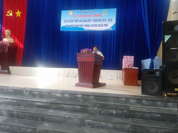 Lễ "Trao học bổng Xổ số kiến thiết An Giang (đợt 1) năm học 2019-2020 cho học sinh huyện Châu Phú tỉnh An Giang" do Công ty TNHH MTV Xổ số kiến thiết An Giang tài trợ