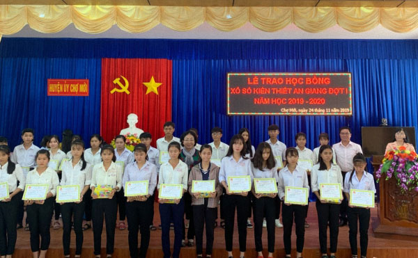 Lễ "Trao học bổng xổ số kiến thiết An Giang (đợt 1) năm học 2019-2020 cho học sinh huyện Chợ Mới, tỉnh An Giang" do Công ty TNHH MTV Xổ số kiến thiết An Giang tài trợ