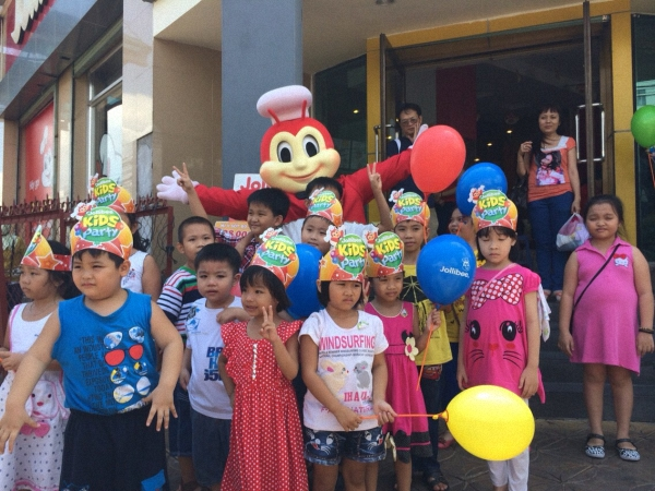 của chú ong Jollibeen trước khi nhập tiệc nào