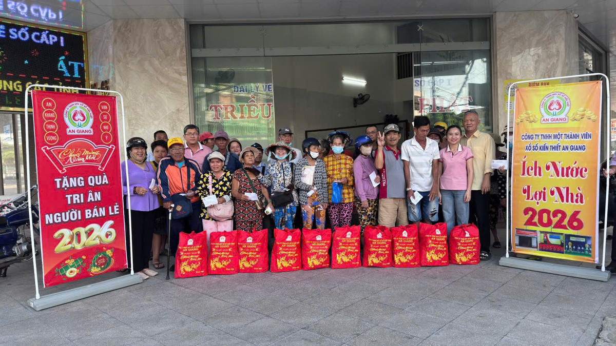 Nhân dịp Tết Bính Ngọ 2026, Công ty TNHH MTV Xổ số Kiến thiết An Giang tổ chức tặng quà cho người bán vé số lẻ lớn tuổi, tàn tật trên địa bàn tỉnh An Giang.