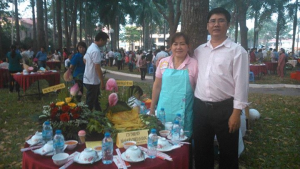 Ảnh: Ông Nguyễn Phước Tạo- Phó Chủ Tịch CĐCS Công ty chụp ảnh cùng cô Thủy- đầu bếp chính với tác phẩm dự thi.