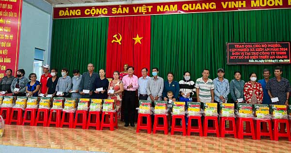Sáng ngày 25/01, Công ty trách nhiệm hữu hạn một thành viên xổ số kiến thiết An Giang phối hợp với ủy ban nhân dân xã Kiến An, huyện Chợ Mới, tỉnh An Giang tổ chức trao quà cho hộ nghèo, hộ cận nghèo, nhân dịp Tết Nguyên đán Giáp thìn 2024.