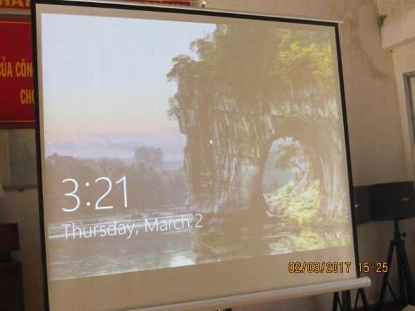 Cán bộ Công ty hướng dẫn cách lắp đặt và sử dụng máy chiếu do Công ty trao tặng.