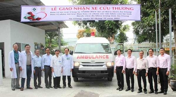 Trước nhu cầu đưa rước cán bộ thuộc diện BTV Tỉnh ủy quản lí đến khám chữa bệnh, Ban tổ chức Tỉnh ủy có Công văn số 1177/CV/BTCTU đã đề nghị Công ty TNHH MTV Xổ số Kiến Thiết An Giang hỗ trợ đầu tư 01 chiếc xe chuyển viện chất lượng cao và trang thiết bị y tế theo xe dành riêng cho Ban bảo vệ chăm sóc sức khỏe cán bộ, để phục vụ việc đưa đón cán bộ tỉnh đến khám chữa bệnh. Hôm nay, ngày 22 tháng 12 năm 2022 tại Bệnh viện đa khoa tỉnh An Giang Công ty TNHH MTV Xổ số Kiến thiết An Giang và đại diện BTC Tỉnh ủy, Sở Y tế, lãnh đạo Bệnh viện đa khoa An Giang tổ chức buổi lễ bàn giao xe cứu thương chất lượng cao.