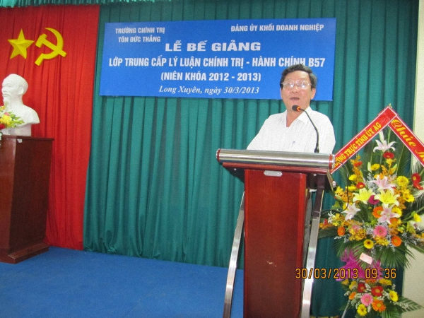 Sáng 30/03/2013, tại nhà khách Công đoàn, Trường Chính trị Tôn Đức Thắng phối hợp với Công ty TNHH một thành viên Xổ số kiến thiết An Giang tổ chức lễ bế giảng lớp Trung cấp lý luận Chính trị - Hành chính B57 (NK 2012 - 2013).