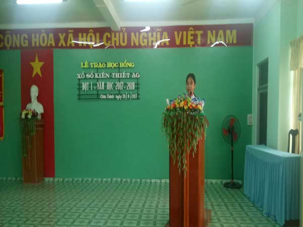 Ngày 30/09/2017, tại huyện Châu Thành, tỉnh An Giang, Hội Khuyến học huyện Châu Thành, tổ chức lễ trao học bổng Xổ số Kiến thiết An Giang đợt 1, năm học 2017-2018.
