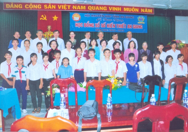Ngày 05 tháng 8 năm 2012, tại Hội trường Câu lạc bộ Hưu trí tỉnh An Giang, Hội Khuyến học kết hợp cùng Sở Giáo dục & Đào tạo An Giang thực hiện chương trình “Lễ trao học bổng Xổ số kiến thiết tỉnh An Giang” năm học 2012-2013. Đây là lần đầu tiên trong 14 năm thực hiện trao học bổng, được Đài Phát thành Truyền hình An Giang truyền hình trực tiếp thay vì như hàng năm trước đây chỉ đến quay phim và đưa tin.