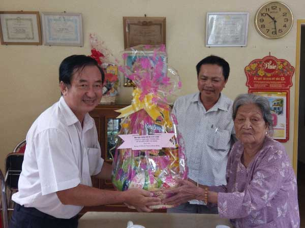 Ông Lý Thanh Đan – Phó Giám đốc công ty, đại diện đoàn thăm hỏi và tặng quà cho Mẹ VNAH Phạm Thị Nở (tại phường Mỹ Phước, TP. Long Xuyên)