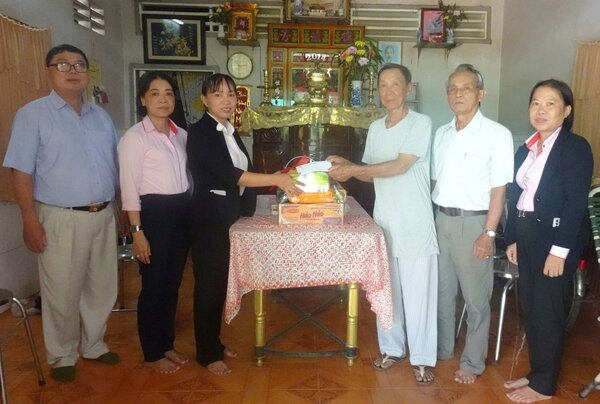 Lãnh đạo Công ty và các Hội Nạn nhân địa phương thăm hỏi, tặng quà cho gia đình bà Nguyễn Thị Lợi (mẹ của ông Đào Văn Lớn và Đào Văn Nhỏ) ngụ tại 262, tổ 4, ấp Phú Đông, xã Phú Long, huyện Phú Tân, tỉnh An Giang